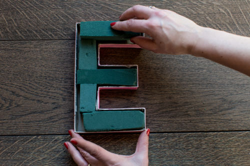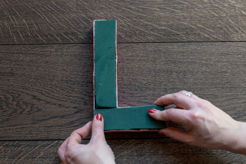 - Placez la brique en mousse à l’intérieur de la lettre et collez-la au fond afin de la fixer.