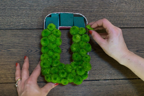 - Piquez et assemblez harmonieusement vos fleurs sur la mousse.